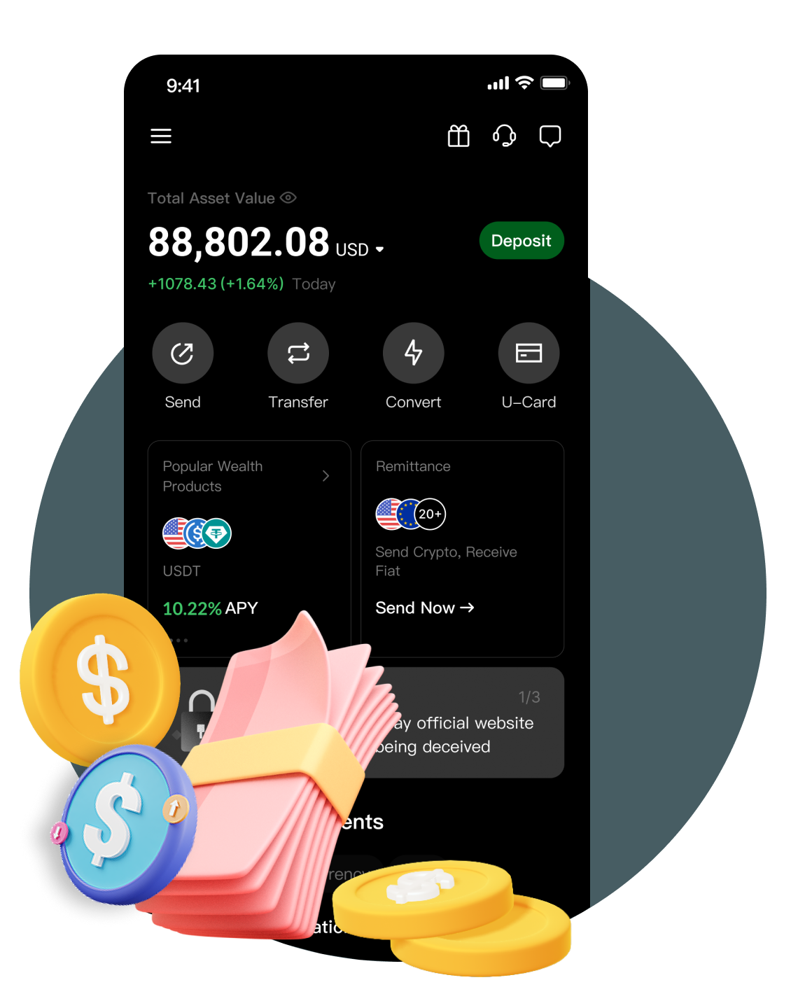 Instantly convert between USDT and fiat. Use digital currencies for stock trades or convert stock profits back into crypto—enabling agile fund movement across markets with streamlined management.